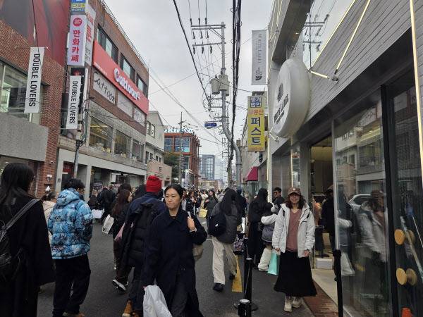 [땅집고] 지난 13일 오후 서울 지하철 2호선 성수역. 설 연휴를 앞둔 이른바 ‘불금’을 맞아 성수동을 찾은 20~30대 젊은층이 역사를 빠져나가기 위해 개찰구 앞에 길게 줄을 섰다. 3번 출구로 나와 이면도로를 따라 걷다보니 성수동 상권에서 핵심으로 통하는 연무장길 중심으로 독특한 메뉴와 아기자기한 인테리어를 자랑하는 10~20평 남짓 식당과 카페가 줄줄이 보였다.