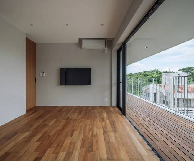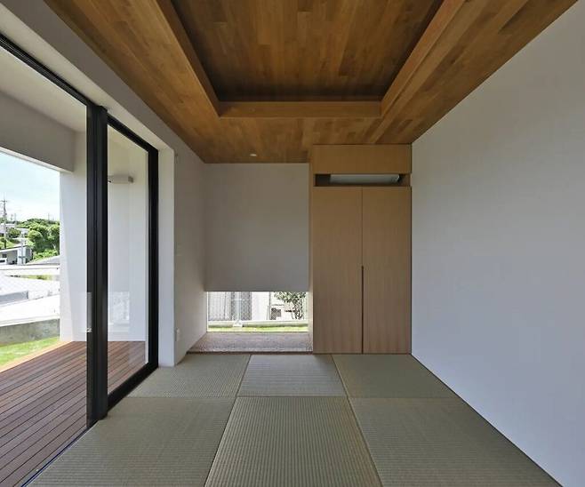테라스는 실내와 정원을 자연스럽게 연결하는 완충 공간입니다. 오키나와 전통 건축 기법을 활용하여 큰 처마를 만들어 그늘을 제공하고, 이를 통해 에어컨에 대한 의존 없이 쾌적한 생활이 가능합니다. 날씨가 좋을 때는 정원에서 피크닉 기분으로 식사를 즐길 수 있습니다.