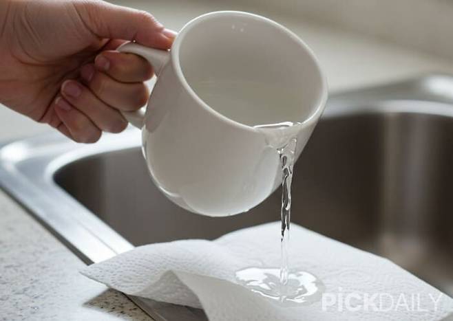 스테인리스 표면에 생긴 물때는 대부분 수돗물 속 석회 성분이 말라붙은 자국이다. 겉보기엔 찌든때 같지만 사실 산성에 쉽게 녹는다. 우리집 대표적인 산성 성분 식초를 활용해주면 좋다. 키친타월이나 부드러운 천에 식초를 적셔 물때 위에 올려두고 10~15분 정도 둔 뒤, 가볍게 문질러 닦아주면 물때가 녹아내리듯 사라진다.