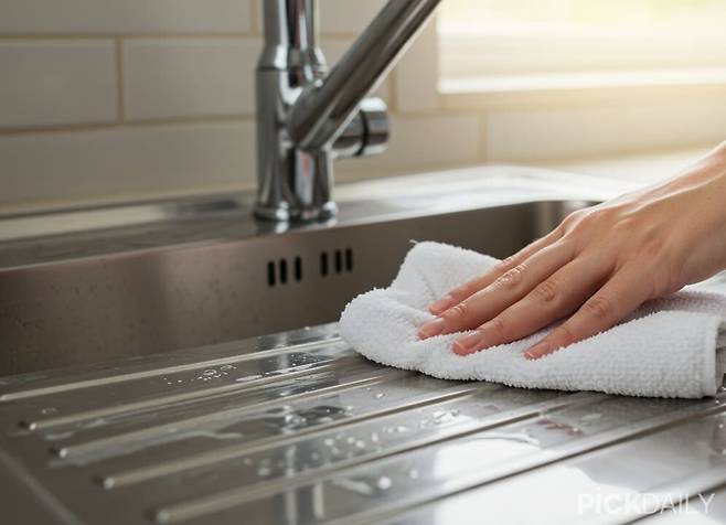 물을 쓴 뒤 바로 닦지 않으면 그 자리에 자국이 남고, 몇 번 반복되면 누렇게 변색되기까지 한다. 그런데 이 물때, 사실 아주 간단한 방법으로 훨씬 덜 생기게 만들 수 있다. 미뤄둔 스테인리스 청소, 오늘 딱 한 번만 제대로 해보자.
