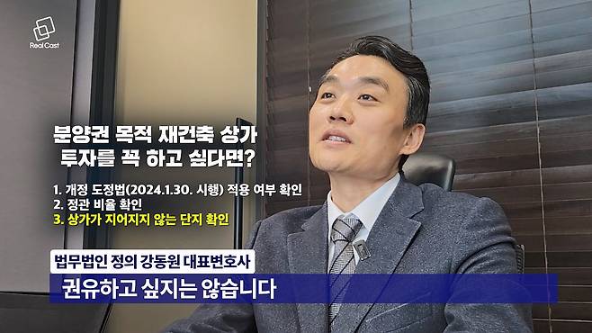 A. 강동원 변호사 : “아파트 분양받고 싶다. 근데 상가 지분으로 하고싶다?” 그렇게 하고 싶은 사람이 뭐 꼭 그렇게 해야 된다라고 한다면…