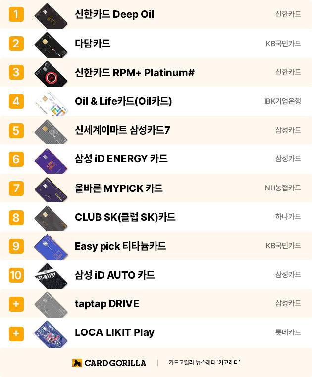 ์ฐธ๊ณ ๋ก ๊ธฐ๋ฆ๊ฐ์ด ์ค๋ฅผ ๋, ํ ์ธ ํญ๋ ํจ๊ป ์ปค์ง๋ ๋น์จ ํ ์ธ์นด๋๊ฐ ๊ณ ์ ๊ฐ ์๋์ ์ ๋ฆฌํ ํธ์ด์์. ๋ฐ๋ก <์ ํ์นด๋ Deep Oil>์ฒ๋ผ์.