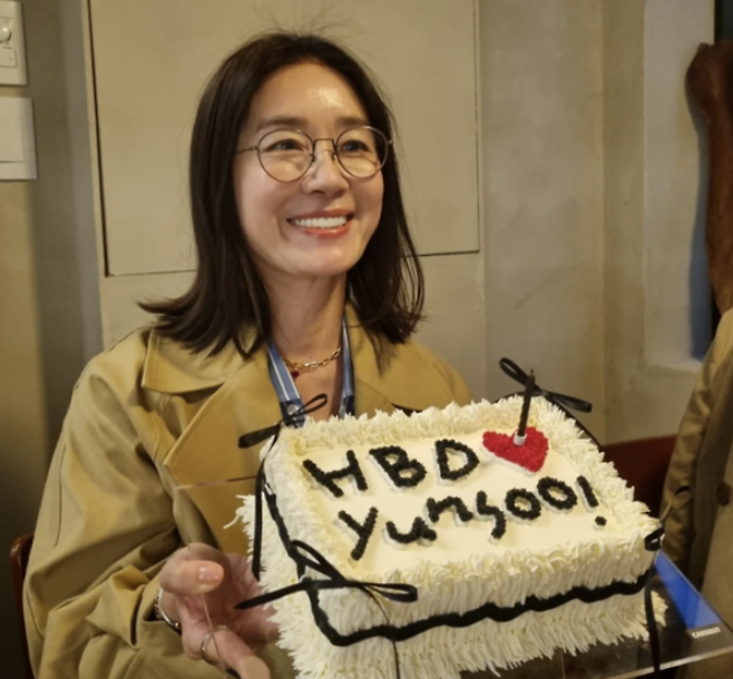 사진 속 오연수는 베이지색 트렌치코트에 동그란 안경을 매치해 지적이면서도 우아한 매력을 뽐냈다. HBD Yunsu!라고 적힌 케이크를 든 그녀의 얼굴에는 행복감이 가득한 모습이었다.