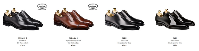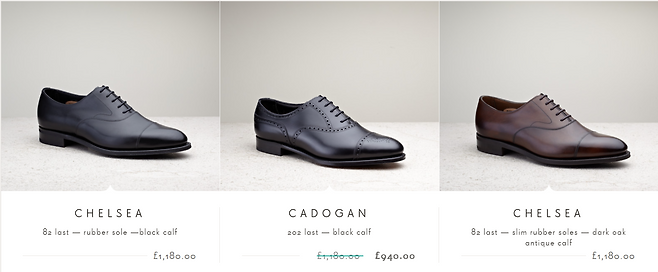 장인의 손을 거친 200가지의 공정, 독창적 틀 설계, 최상급 소가죽·스웨이드 등 소재 엄선이 강점이다. 세련된 외관과 고급스러운 마감, 묵직하면서도 우아한 실루엣이 크로켓앤존스를 대표하는 이미지다. 한정판 패턴이나 색상의 신제품도 꾸준히 출시한다. 착화감 좋은 클래식의 모범 사례로 꼽힌다. 100만원대 미만으로, 버윅보다는 가격대가 높은 편이지만 역사를 생각하면 결코 비싸다고 느껴지지 않을 것이다.