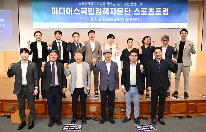 전 수석 최고위원은 인사말에서 “어르신 생활체육 시스템 확대와 국민 누구나 일상에서 체육을 즐길 수 있는 환경 조성이 절실하다”며 “이번 포럼이 스포츠 건강복지를 실현하는 본격적인 걸음이 되길 바란다”고 강조했다. 최수만 미디어스 국민정책단 회장은 “스포츠계는 다양한 제도 개선이 필요한 시점”이라며 “오늘 논의된 내용들이 실효성 있는 법령과 시행령으로 구체화되길 바란다”고 말했다.