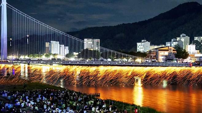 남대천변을 따라 펼쳐지는 별빛다리 카운트다운, 음악분수, 낙화놀이, 레이저쇼, 그리고 마지막을 장식하는 불꽃놀이까지.