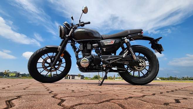 코너에서는 볼륨감 넘치는 연료 탱크를 허벅지로 꽉 조이며 차를 누이는 ‘폼’을 잡아본다. 모터사이크를 제법 멋있게 타는 듯한 착각에 빠진다. 특히 GB350S는 뒤에 넓은 17인치 타이어를 적용해 그립을 최대한 확보하고 있다. 안정적인 코너링에도 큰 도움을 주는 리어 타이어다.