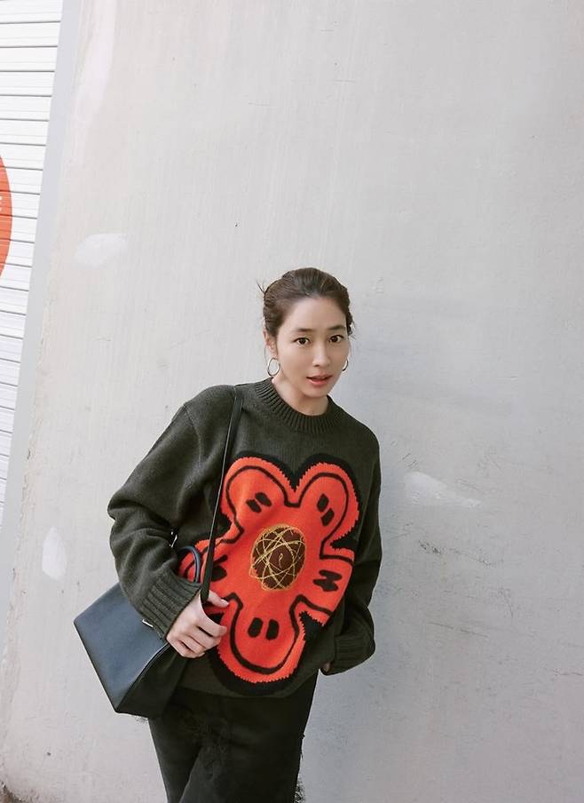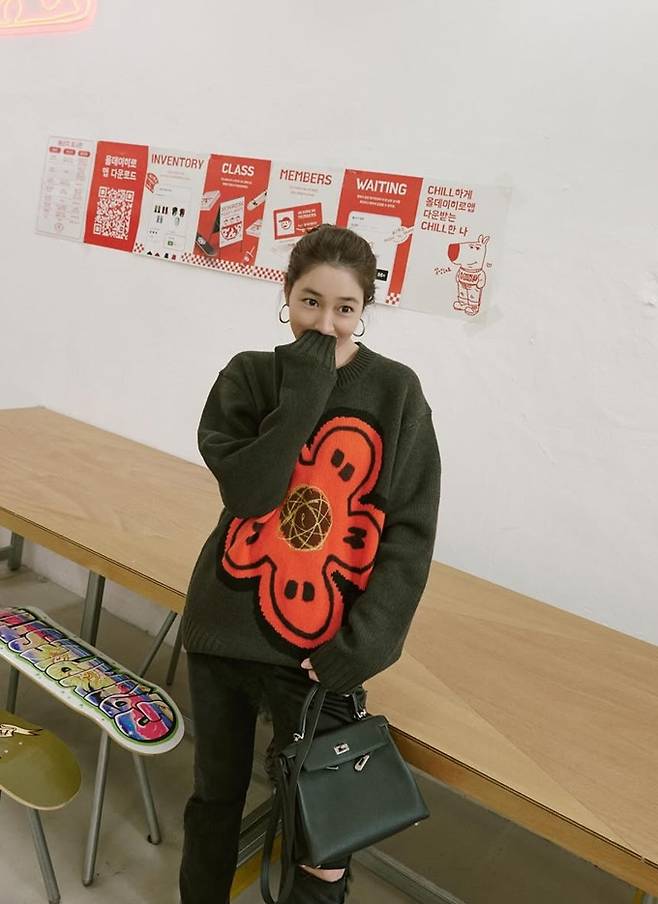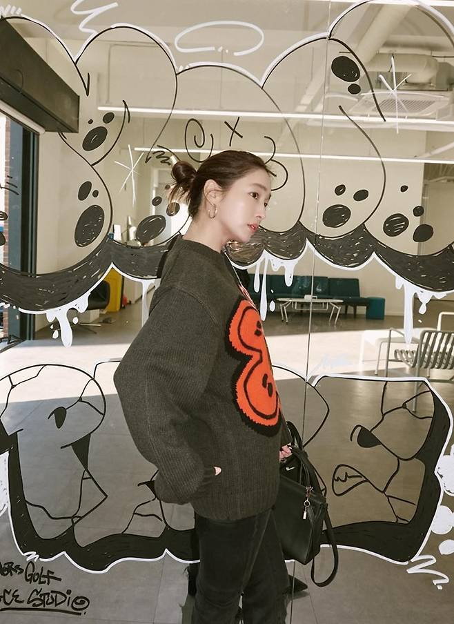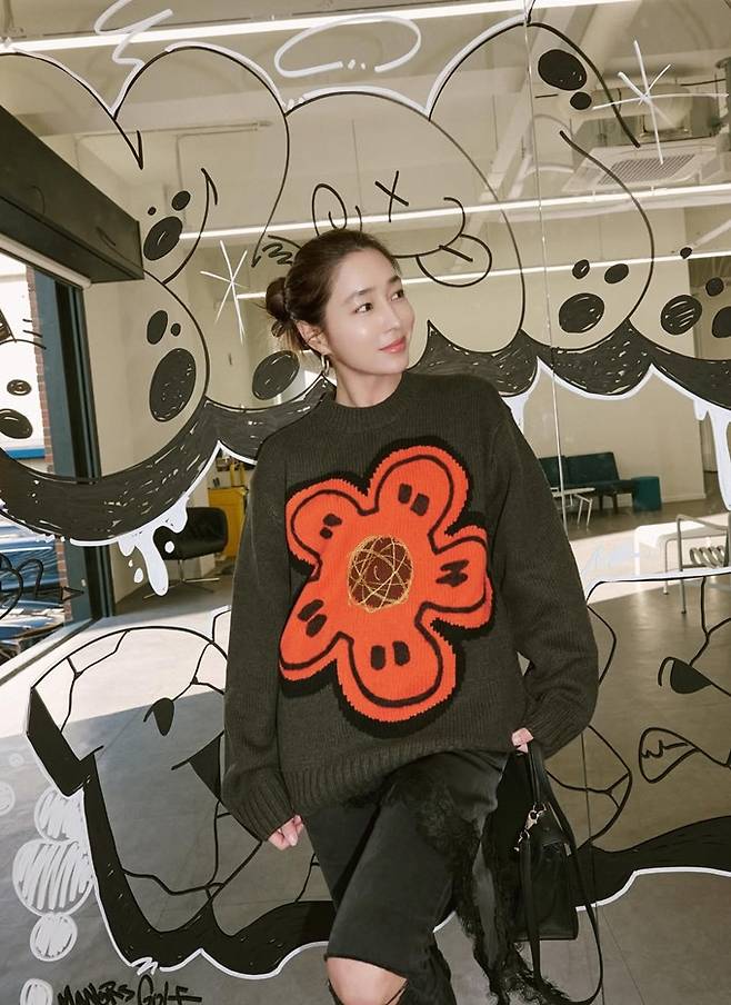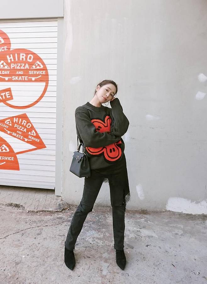 배우 이민정이 찢어진 바지와 캐릭터 니트 스웨터의 힙한 외출룩으로 10대 소녀 같은 걸리시한 모습을 선보였다.