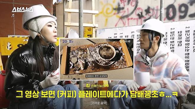 공사장에서 커피 마시는 거 아니야?"
