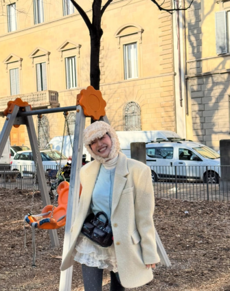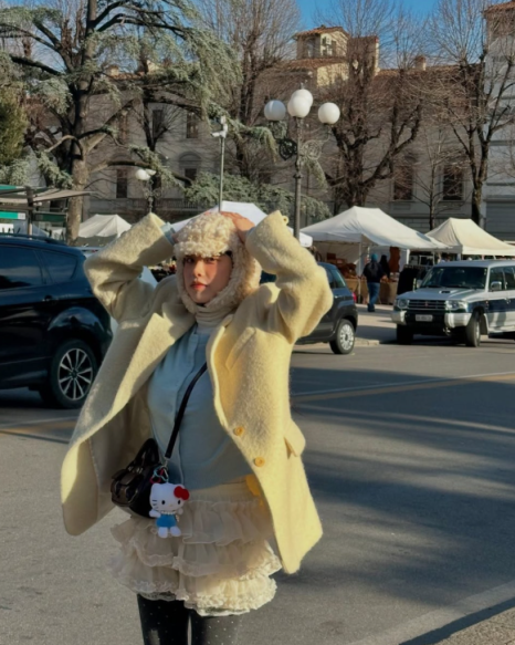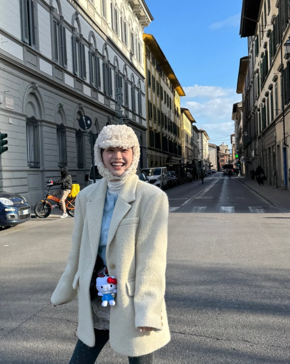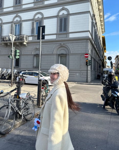 햇살이 부드럽게 스며드는 이탈리아의 거리에서 츄는 특유의 밝은 미소를 지으며 거리를 거닐고 있었어요. 그녀가 입은 오버핏 울 자켓은 마치 포근한 구름을 두른 듯한 느낌을 주었죠.