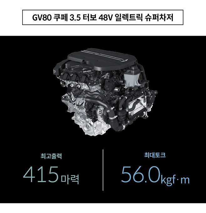 제네시스 GV80 다양한 매력은 파워트레인에서도 만나 볼 수 있는데 최고출력 304마력, 최대토크 43.0kgf.m를 자랑하는 2.5 가솔린 터보 엔진과 최고출력 380마력, 최대토크 54.0kgf.m를 발휘하는 3.5 가솔린 터보 엔진, 여기에 GV80 쿠페 전용 파워트레인으로 잘 알려진 3.5 가솔린 터보 48V 일렉트릭 슈퍼차저는 8기통 엔진 수준의 출력을 더 효율적으로 발휘하여 최고출력 415마력, 낮은 엔진 회전 영역대인 1,300rpm에서도 56.0kgf.m의 강력한 최대 토크를 자랑합니다.