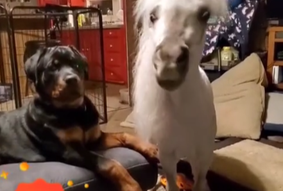 반려견 네 마리가 옹기종기 모여 있는 거실, 그 사이에서 아주 자연스럽게 소파를 차지하고 누워 있는 동물이 포착되어 화제다.