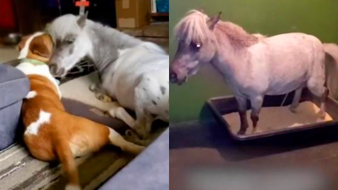 집 안에서 TV 보고 낮잠 자는 미니어처 말, 프레드의 일상