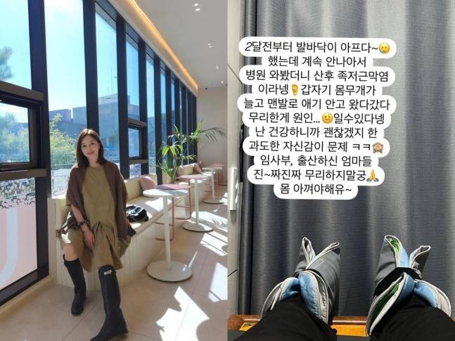그리고 아유미는 2024년 6월 딸을 출산했는데요. 2024년 9월 28일 아유미는 27일 인스타그램 스토리를 통해 "2달 전부터 발바닥이 아프다고 했는데 계속 안 나아서 병원 와봤더니 산후 족저근막염이라네"라는 문구와 함께 사진을 한 장 게재했습니다.