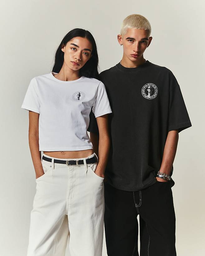 화이트 크롭 티셔츠와 피그먼트 오버사이즈 두 가지 디자인으로 선보이는가 하면,