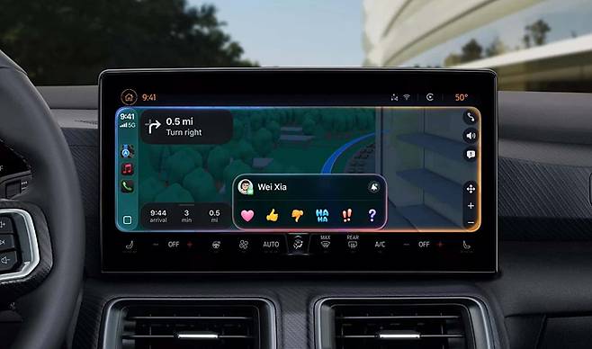 또한 iOS의 대표 기능인 위젯도 카플레이에 본격 도입된다. 주차장 게이트 열림, 스마트홈 제어 등의 정보 위젯을 차량 화면에서도 확인할 수 있으며, 실시간 인터랙티브 알림 기능인 ‘Live Activities’도 적용된다. 메시지에 이모지로 빠르게 응답할 수 있는 Tapback 기능도 지원된다.
