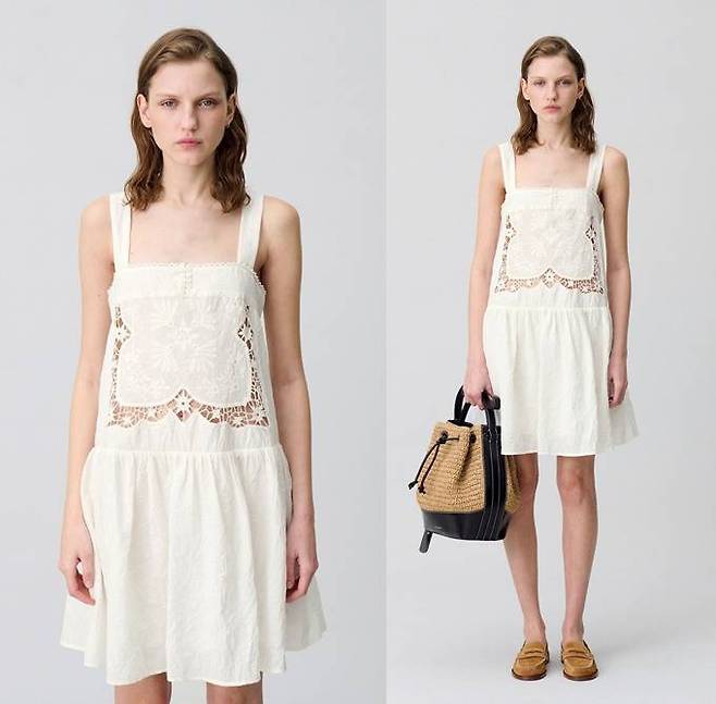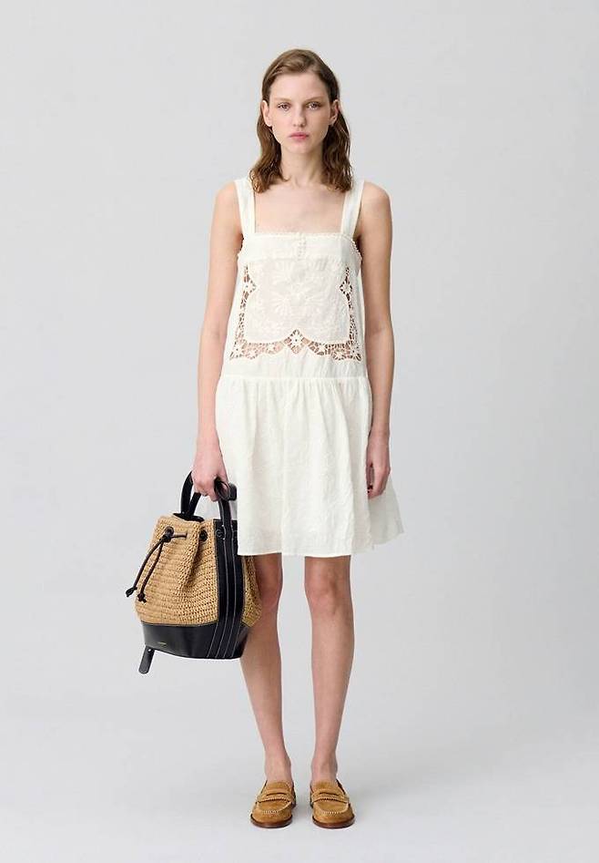 프렌치 컨템포러리 브랜드 '끌로디 피에로(CLAUDIE PIERLOT)' 자수 레이스 미니 원피스는 100% 면소재의 슬리브리스 디자인으로 로맨틱한 분위기를 선사한다.
