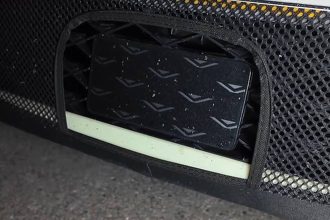 최신 차종은 꽤 많은 주행 보조 장치가 기본으로 탑재되기에 범퍼에 레이더가 적용되는 것이 일반적이라고 느끼는 수준이다. 그런데 이 레이더는 신차가 위장막을 쓰고 있을 때 라디에이터 그릴의 디자인을 유추해 볼 수 있는 지표로 작용할 때가 있다. 그랜저 페이스리프트 역시 같은 맥락이다. 그랜저는 등급에 따라 전면부 SCC 레이더 판에 그릴 디자인 패턴을 그대로 옮겨둔다. 그런데 이번에 포착된 프로토타입의 레이더 디자인이 바뀐 사실이 확인되었다.
