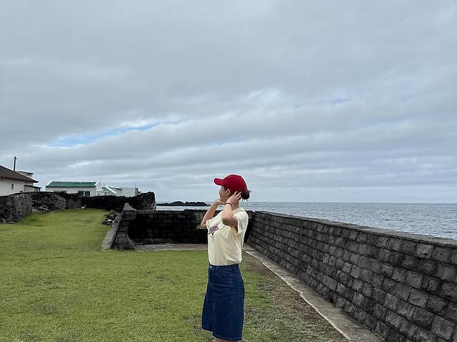 신지는 인스타그램을 통해 조용한 바닷마을에서의 자연스러운 휴가패션을 공개했어요.