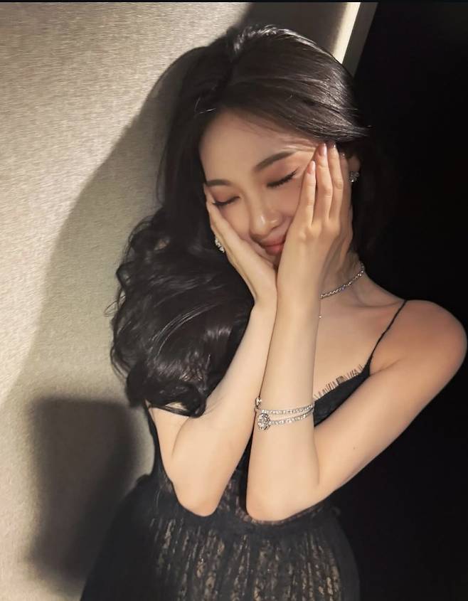 특히 레이스 디테일과 도트 망사로 마무리된 드레스 밑단은 로맨틱하면서도 관능적인 실루엣을 완성해 시선을 집중시켰습니다.