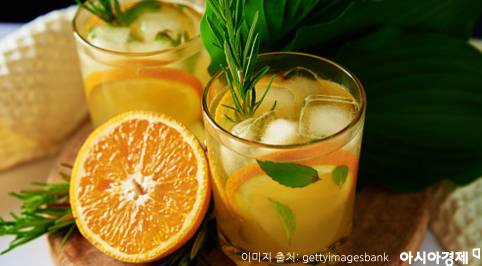 ▶ 오렌지, 레몬, 자몽이 함유된 차 또는 에이드