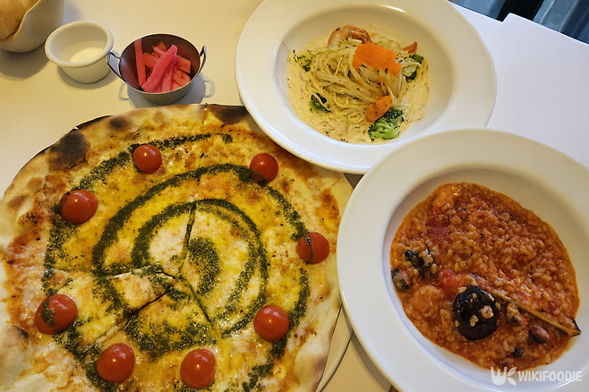 트러플 버섯 크림 리조또는 향이 진하고 크리미해 만족도가 높고, 해산물 토마토 리조또는 산뜻한 맛으로 즐길 수 있다. 먹물 리조또는 은은한 풍미와 독특한 색감으로 시선을 끈다. 고르곤졸라 피자, 루꼴라 피자, 마르게리따 피자 같은 메뉴도 인기가 많다.