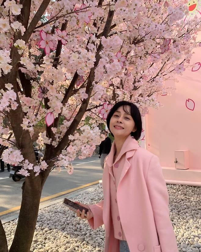 만개한 벚꽃 아래에서 우희진은 파스텔 핑크 코트로 봄의 정취를 만끽하는 모습을 연출하고 있다. 코트의 부드러운 핑크 톤이 벚꽃과 완벽한 조화를 이루며, 로맨틱하면서도 세련된 분위기를 자아내고 있다. 단정한 코트 스타일링으로 우아함을 강조하면서도 계절감을 살린 패션 센스를 보여주고 있다.