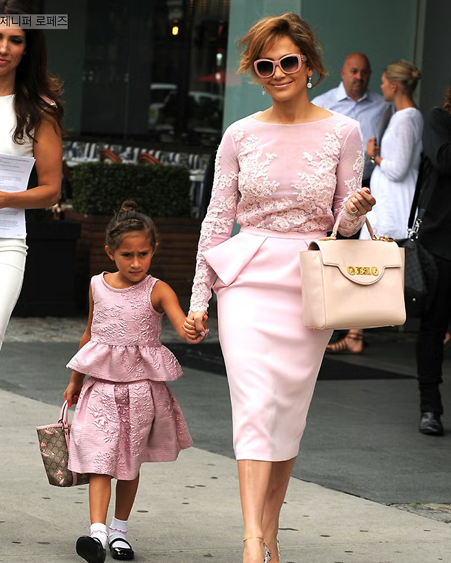 제니퍼 로페즈는 비슷한 톤의 투피스를