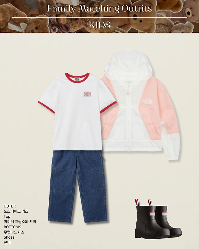 동일한 핑크색 아우터를 걸쳐 주었니다.