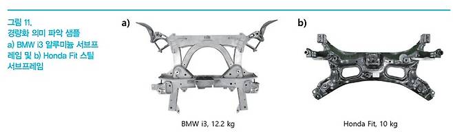 진정한 경량화는 경량 소재를 적용하는 것이 아니라 적재적소에 알맞은 소재를 적용하는 것이며, 전기자동차의 경량화도 중요하지만, 경량화의 효과가 차체 대비 10배 이상 높은 구동에 관계되는 파워트레인과 현가 하질량(Unsprung Mass)에 해당하는 섀시 부품의 경량화가 더욱 중요해지고 있다.