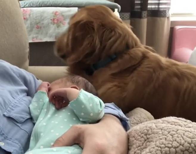 사연은 이렇습니다. 골든 리트리버 루이(Louie)를 키우는 집사는 SNS를 통해 잠든 아기를 위해서 목소리를 낮춰 작게 짖는 강아지 일앗ㅇ이 담긴 영상을 공개한 것.