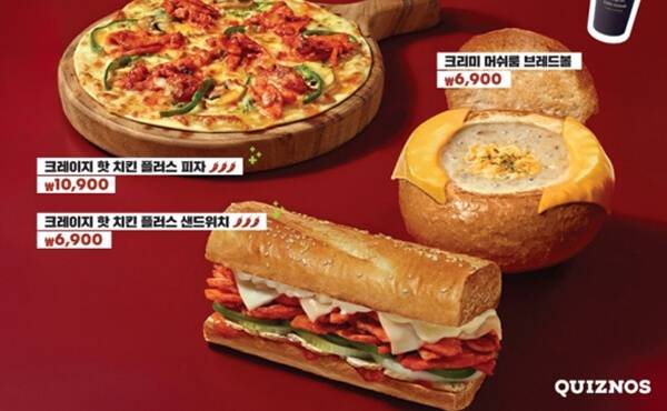 글로벌 샌드위치 패스트푸드 전문 브랜드 퀴즈노스는 ‘핫앤핫 콜렉션’을 선보이며, 메뉴 중 하나로 피자를 출시했다. 샌드위치와 함께 즐길 수 있는 ‘크레이지 핫 치킨 플러스 피자’로, 얇은 도우 위에 핫 치킨 토핑이 올라가 매콤한 맛을 즐길 수 있는 퀴즈노스 사이드 메뉴다. 오븐에 구워 바삭한 도우 위에 치즈의 담백함, 핫 치킨 토핑의 매콤함이 어우러져 풍성한 맛을 자랑한다. 매장 판매가는 10,900원이다.