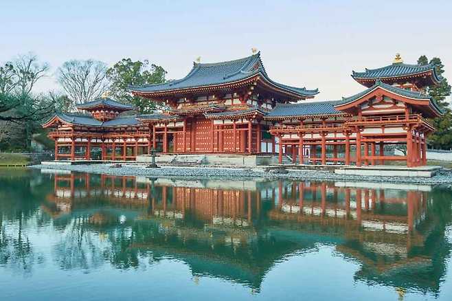 거리를 걷다 보면 '보됴인(平等院)'에 다다르게 되는데요. 이곳은 세계문화유산으로 등재된 사원입니다. 천년의 역사를 자랑하는 곳입니다. 이곳에는 일본의 10엔짜리 동전에 새겨진 봉황당이 자리 잡고 있죠. 약 2.5m의 아미타 여래 좌상이 안치된 봉황당을 볼 수 있습니다.