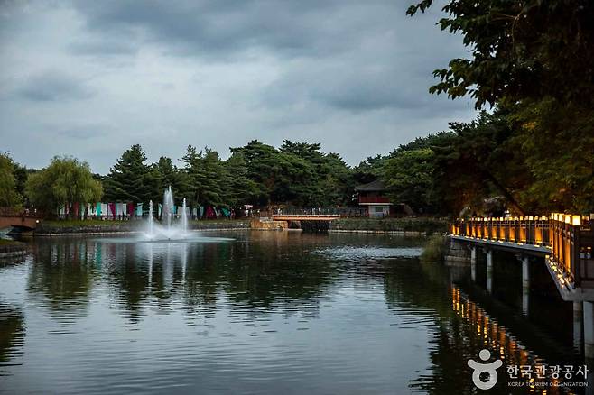 연꽃과 초록의 계절.연못 중간의 작은 섬과 다리 주변은 연잎 향이 가득하며,물안개와 어우러진 새벽 산책도 강력 추천.