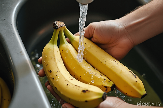 먼저 바나나를 보관하기 이전에 흐르는 물에 가볍게 한 벗 씻어서 닦아 보관하면 좋다. 바나나 껍질에는 많은 잔류 농약이 남아 있기 때문에, 물로 헹궈주는 것 만으로도 손에 묻는 농약을 어느정도 방지 할 수 있다.