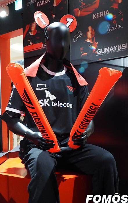 서울 송파구에 위치한 롯데월드몰 지하 1층 쇼핑가에 마련된 팝업 스토어는 보다 다양한 곳에서 T1 SHOP의 인기 상품들을 보다 다양한 곳에서 팬들에 선보이기 위해 마련됐으며, 오는 2월 15일까지 운영될 예정이다.행사장 앞에는 T1의 로고와 함께 T1의 영광의 순간과 새로운 도전을 소개하는 영상이 상영됐으며, ‘페이커’ 이상혁의 소환사명이 새겨진 유니폼과 ‘무적함대’ 점퍼도 보였다. 안에 들어서면 스프링 스플릿 우승을 기념한 축소 트로피가 가장 먼저 눈에 띄었으며, 그 옆에 앉아있던 유니폼과 응원 도구를 갖춘 마네킹도 경기장의 분위기를 잠시나마 느끼게 했다.