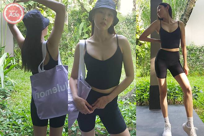 사진 속 한혜진은 검은색 브라톱과 레깅스를 입고 볼륨감 넘치는 몸매와 우월한 비율을 뽐내 눈길을 끌었습니다.