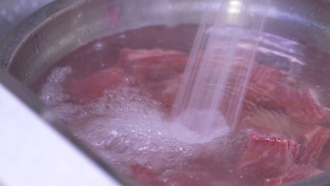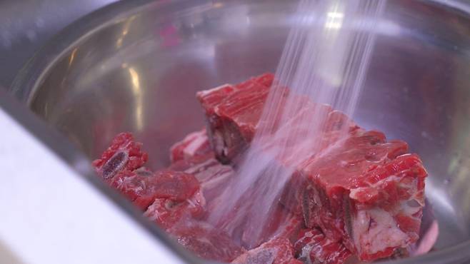 이렇게 핏물을 제거해야 누린내가 나지 않고 맛있어요.