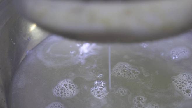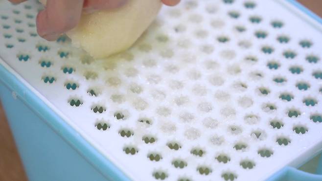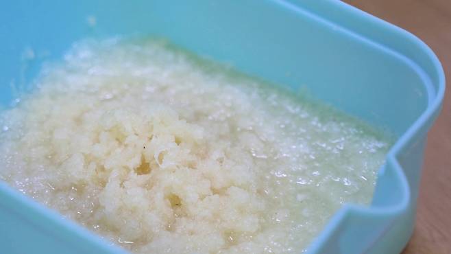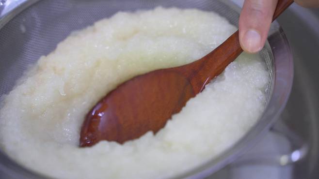 고운체에 간 것을 넣고 즙을 내주세요.