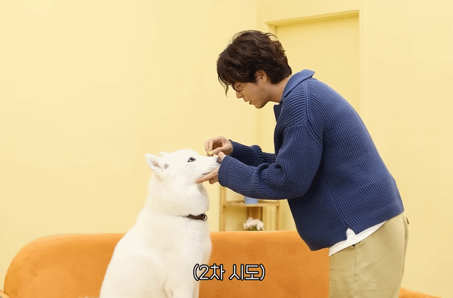 코 위에 간식을 올려놓고 ‘기다려’를 하는 개인기도 보여줬는데요!