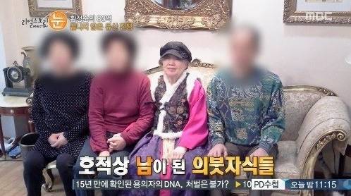 故황정순 여사의 호적에는 손자와 조카 손자, 조카 손녀가 양자녀로 입적되어 있는 상태였는데, 의붓아들은 "故황정순 여사가 치매가 걸린 틈을 타 입적했다"며 입적 무효를 주장했어요.