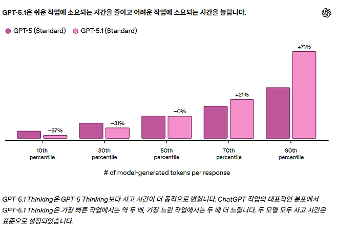 GPT-5.1은 두 가지 형태로 제공된다. ‘Instant’는 빠르고 직관적인 응답에 강점을 가지며, 오픈AI는 이를 “더 따뜻하고, 더 영리하며, 지시를 더 잘 따르는 모델”로 설명했다. 반면 ‘Thinking’은 복잡한 문제 해결과 논리적 추론에 최적화돼 있다. 현재는 사용자 입력에 따라 시스템이 자동으로 두 모델 중 하나를 선택하지만, 향후 수동 전환 기능도 제공될 예정이다.