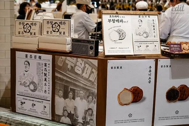 요즘 호두과자 세계에서 큰 화제를 모은 브랜드는 부창제과. ‘늘 음식에 진심인 배우’ 이장우가 관여하는 디저트 브랜드로, 외식업계 전문가와 손잡고 1990년대까지 경주에 있던 제과점을 부활시켰다고 한다. 한국인의 추억을 건드리는 레트로 디저트를 만드는데, 최근 6개월 동안 전국 신세계백화점 푸드코트를 중심으로 매장을 확장시켰다. 브랜드 론칭 이후 1억 개 넘게 만들었다는 호두과자의 맛은 어떨까? 가장 가까운 신세계 강남 스위트파크를 방문했다.