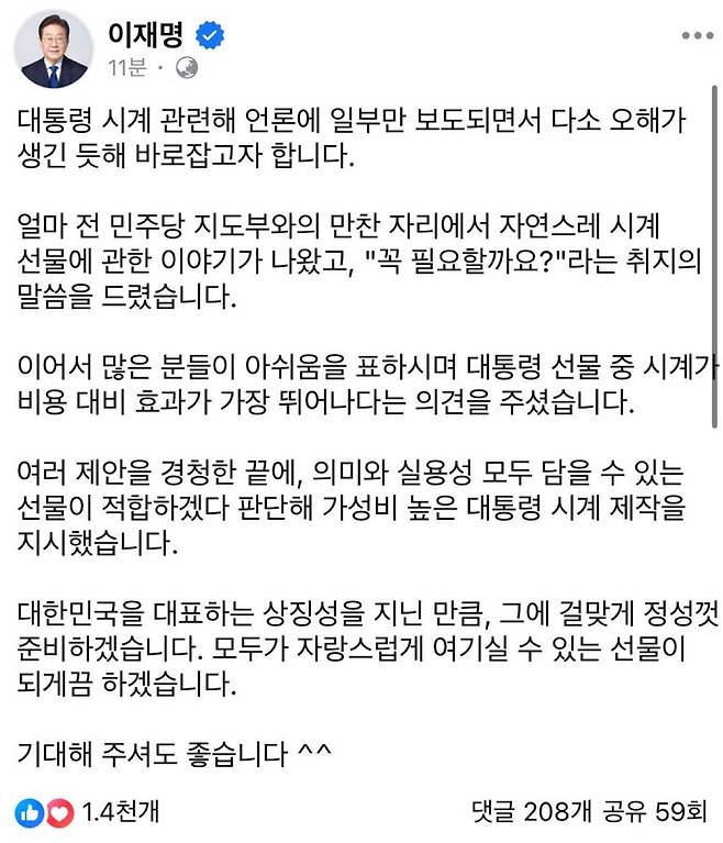 대통령시계 만들기로 했나 봅니다.