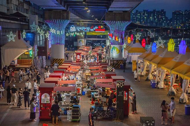 칠성 야시장은 대구 놀거리 중 가장 낭만과 열정이 넘치는 곳인데요. 신천둔치 공영주차장 일원에 자리 잡은 칠성 야시장은 신천둔치의 아름다운 야경과 함께 약 60여 종의 다양한 스트릿푸드와 함께 낭만적인 공연과 볼거리를 제공합니다.