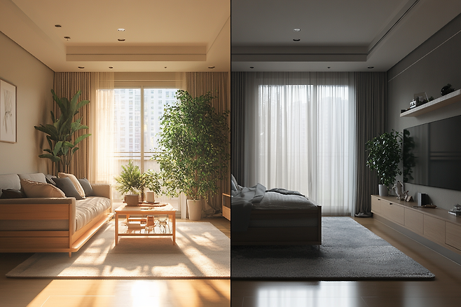 - 낮엔 커튼을 활짝 열고, 창가 근처 가구 배치를 조정해 햇빛이 더 잘 들어오도록 해보세요.