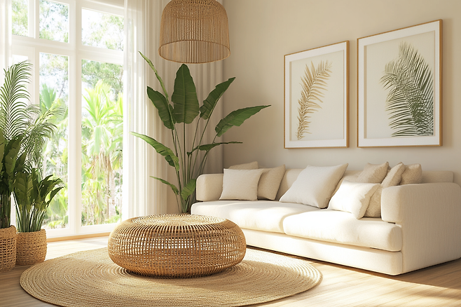 - 포인트는 쿠션, 러그, 그림 등으로 조금씩만 넣어도 충분해요.