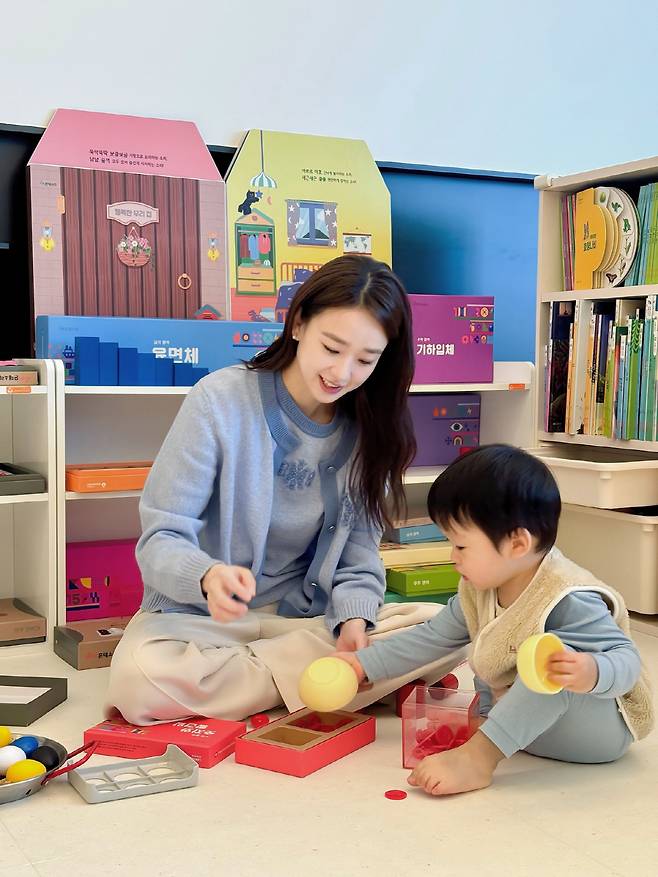 또 다른 사진에서는 바닥에 앉아 함께 교구를 맞추는 모습이 담겼다. 손연재는 밝은 미소로 아이와 교감하며 자연스러운 '엄마 모드'를 보여 눈길을 끌었다.