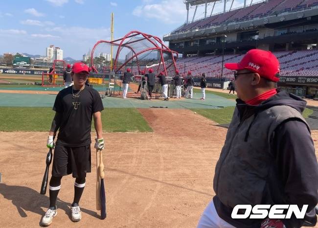 박찬호는 1일 광주-기아 챔피언스필드에서 1군 선수들과 정상 훈련을 소화했다. 캐치볼을 시작으로 펑고 수비도 받고 티배팅에 이어 배팅케이지에 들어가서 타격 훈련도 했다. 왼쪽 담장을 넘기는 홈런도 터트리며 쾌조의 스윙을 했다. 가볍게 러닝도 했다. 무릎보호대를 찼다.