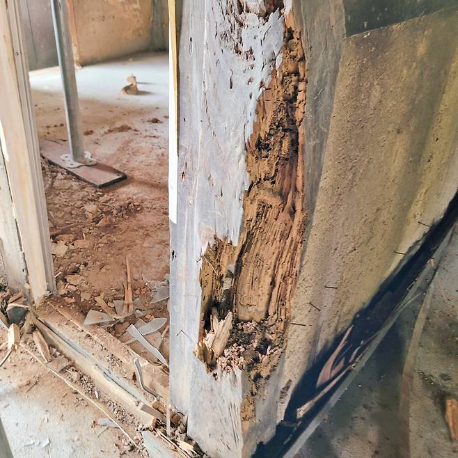 중량 목구조에서 칸막이 벽체에 가로로 있는 중방이나 하방은 하중을 받지 않는 수장 벽체이기 때문에 철거에 문제가 되지 않는다. 그러나 기둥, 도리, 보는 실질적으로 하중을 받는 구조로 이 부분의 상태가 리모델링에서는 가장 중요하다. 보통 도리나 보가 썩은 경우는 흔하지 않으나 기둥 하부가 썩은 경우는 어렵지 않게 발견되곤 한다. 구옥은 보통 기둥 하부까지 도배지로 덮기 때문에 이를 육안으로 확인하기가 쉽지 않은데, 이때는 잠시 양해를 구하고 도배지 하단을 들춰낸 후 날카로운 것으로 기둥을 몇 번 긁어 알 수 있다. 긁었을 때 노란 원목이 나온다면 비교적 안심해도 되지만, 으스러진다면 이미 썩어 있을 확률이 높다. 또한 전체 기둥에서 한두 개 정도가 썩은 경우라면 어느 정도 보강할 수 있겠지만, 대부분이 그렇다면 이미 집이 뒤틀려 있을 가능성이 높다. 집이 뒤틀린 정도는 흙벽과 구조 사이 공간이 얼마나 벌어져 있느냐로 직접 확인할 수도 있다. 뒤틀림 정도가 심한 집은 이 부분이 상당히 벌어져 있다.